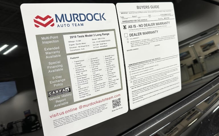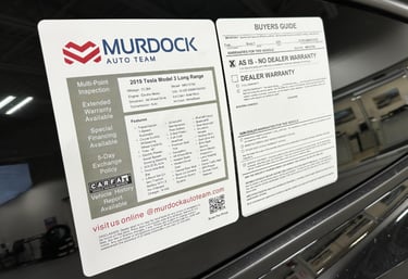High-quality, weather-resistant window stickers that combine bold branding with precise vehicle details—helping your inventory stand out and sell around the clock